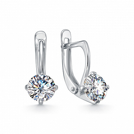 Серьги с фианитом родированные серебро 925*