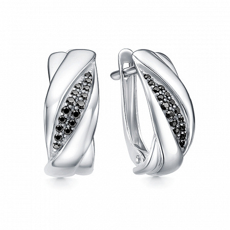 Серьги с фианитом родированные серебро 925*