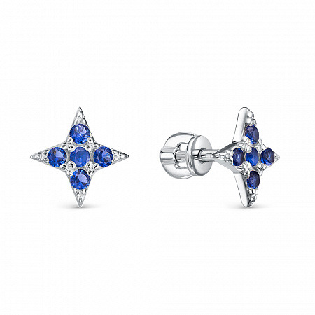 Серьги с фианитом родированные серебро 925*