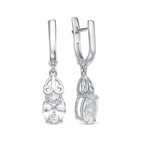 Серьги с фианитом родированные серебро 925*
