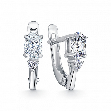 Серьги с фианитом родированные серебро 925*