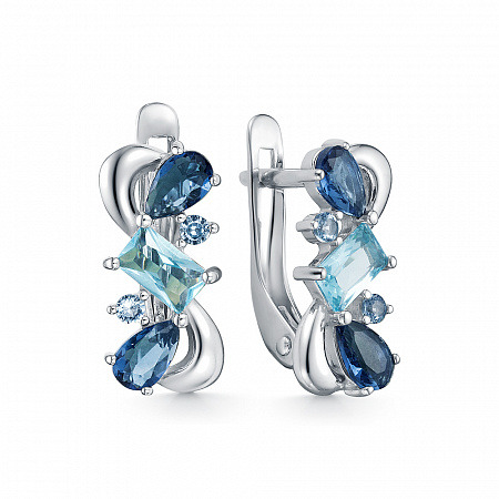 Серьги с фианитом родированные серебро 925*