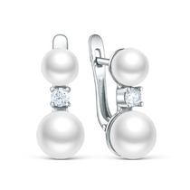 Серьги из серебра с культивированным жемчугом и фианитами родированные 925 пробы