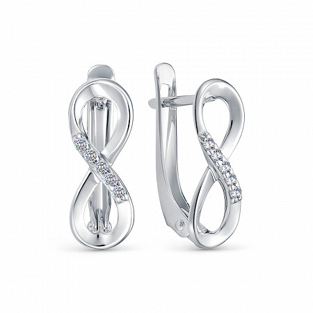 Серьги с фианитом родированные серебро 925*