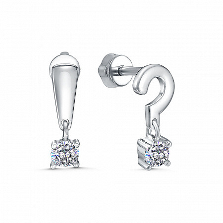 Серьги с фианитом родированные серебро 925*