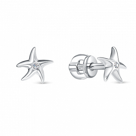 Серьги с фианитом родированные серебро 925*