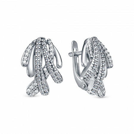 Серьги с фианитом родированные серебро 925*