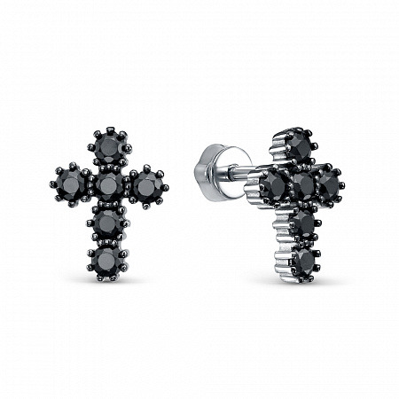 Серьги с фианитом родированные серебро 925*