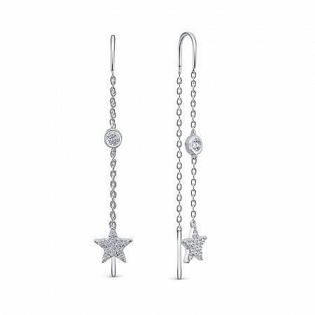Серьги с фианитом родированные серебро 925*