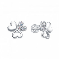 Серьги-пусеты Цветок из серебра с фианитами родированные 925 пробы 12-1846р