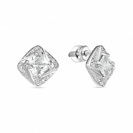 Серьги с фианитом родированные серебро 925*