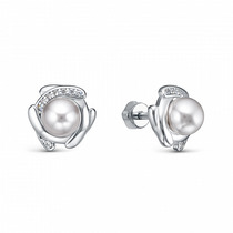Серьги с фианитом родированные серебро 925*