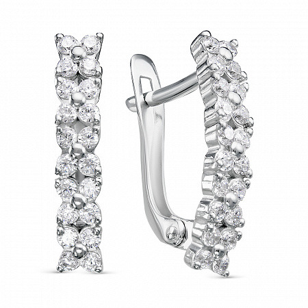Серьги с фианитом родированные серебро 925*