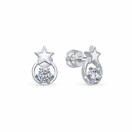Серьги с фианитом родированные серебро 925*