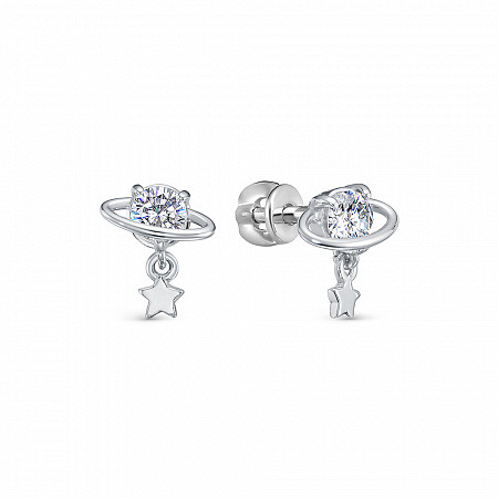 Серьги с фианитом родированные серебро 925*