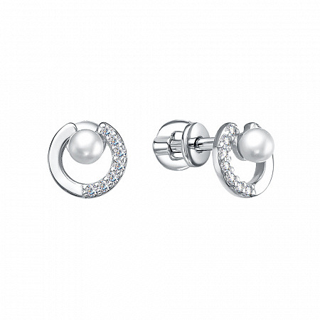 Серьги с иск.жемчугом родированные серебро 925*