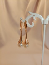 Серьги из золочёного серебра с пл.кварцем цв.лунный камень и фианитами
