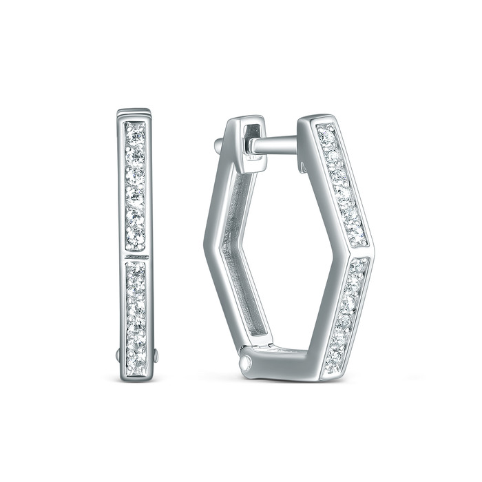 Совместные покупки Сургут Ювелирные украшения и бижутерия Серьги — Серьги восьмиугольники из серебра с фианитами родированные 925 пробы 2-016р200