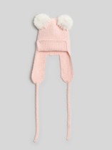 Двойная шапочка с отворотом. Оба слоя и отворот связаны из мягкой акриловой пряжи. Сбоку пришит лейбл. Ушки-завязки пришиты вручную. Подойдет на холодную осень/весну или теплую зиму с капюшоном. Размер = окружность головы в см.