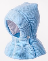 Очень теплая шапочка-капор с отворотом для малышей на холодную зиму. Манишка застегивается на пуговку. Модель с утеплителем - синтепон. Верхний слой шапки и манишка связаны из полушерстяной мериносовой пряжи, нижний слой - выкроен из хлопкового полотна и полностью пришит. Благодаря натуральному подкладу можно носить без чепчика. Мягкая резинка вокруг лица не вытягивается в процессе носки и плотно облегает лицо ребенка. Шапочка хорошо помещается в любой капюшон.