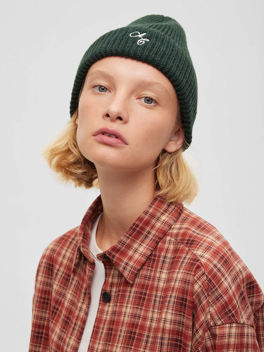 Шапка в рубчик с отворотом и с контрастной вышивкой по переду.