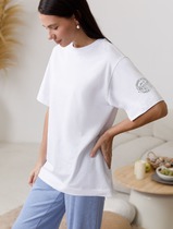 Совместные покупки Сургут Женская одежда Футболки — Широкие джинсы с декоративной стиркой из эластичного плотного денима