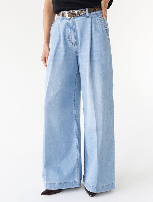 Широкие джинсы с защипами из эластичного денима средней плотности