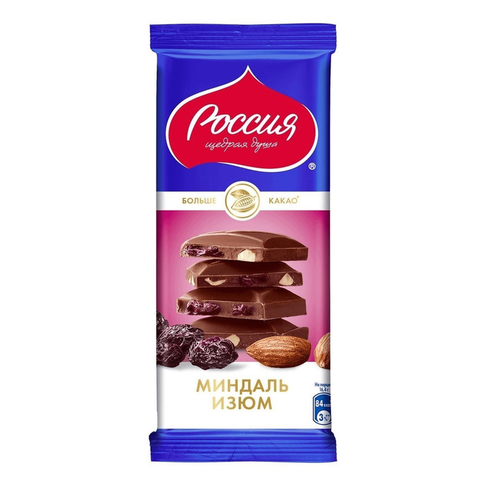 Шоколад РОССИЯ Молочный Миндаль/Изюм