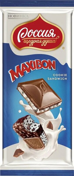 Молочный шоколад Maxibon с двухслойной начинкой со вкусом мороженного и печеньем подарит незабываемое наслаждение.