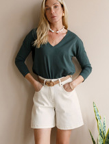 На модели представлены шорты прямого кроя средней посадки. На передней части шорт имеются два кармана с отрезным бочком, что придает удобства в повседневной носке, а отделочный клапан придает изюминку модели.
