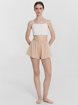 Шорты женские из гладкокрашеного тканого штапельного полотна, свободные, с карманами в боковых швах, на притачном поясе с эластичной тесьмой внутри. Средний шов передних половин обработан имитацией «гульфика»,