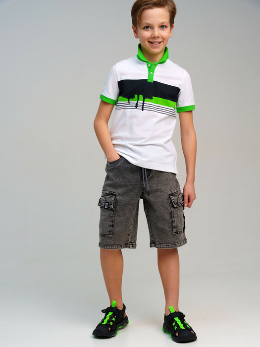 Джинсовые шорты для мальчика подростка. Шорты свободного силуэта на резинке со шнурком. Функциональные карманы. Модель выполнена из качественного и плотного текстиля.