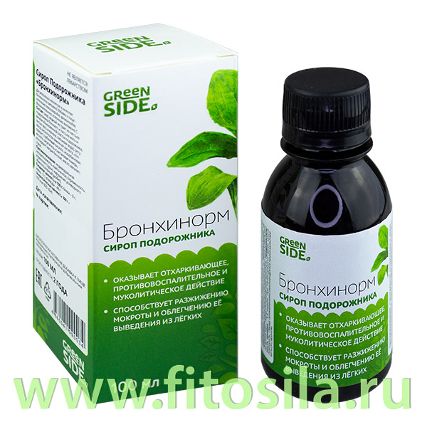 Совместные покупки Сургут Товары для здоровья Добавки к пище, витамины — Сироп подорожника "Бронхинорм" - БАД, 100 мл "Грин Сайд"