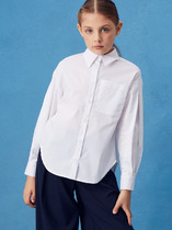 Блузка из смесового хлопка, полуприлегающего силуэта с отложным воротником и длинными рукавами с манжетами. Высокое содержание хлопка в составе обеспечивает отличную воздухопроницаемость и комфорт в повседневной носке. Центральная супатная застёжка на планку с пуговицами. Воротник украшен вышивкой ""кошка"". Отличный вариант для повседневной носки.
