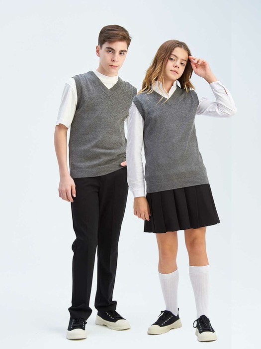 Вязаный жилет из смесового хлопка с V-образным вырезом. Ворот, пройма и низ изделия оформлены резинкой.
