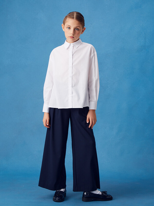 Белая блузка трапециевидного силуэта с длинным рукавом на манжетах и отложенным воротником, — для нежных и женственных школьных образов! Особенность модели в фигурной спинке. Свободный силуэт делает блузку идеальной составляющей комплектов с зауженными или облегающими брюками. Застежка центральная на планку с пуговицами. "