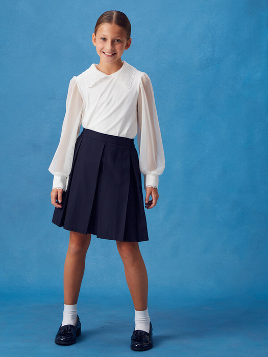 Трикотажная блузка с рукавами из шифона. Воротник и манжеты украшены изящным кружевом. Застежка на спинке на пуговицу.