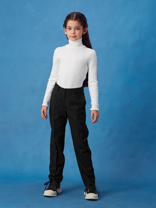 Прямые брюки со стрелками для девочек изготовлены из немнущейся костюмной ткани высокого качества, которая идеально подходит для брюк данного фасона. Высокая талия и пояс на резинке не стесняют движений. Застежка на молнию, петлю и пуговицу на поясе.Брюки имеют карманы достаточной глубины. Брюки элегантно смотрятся на девочках любого роста.
