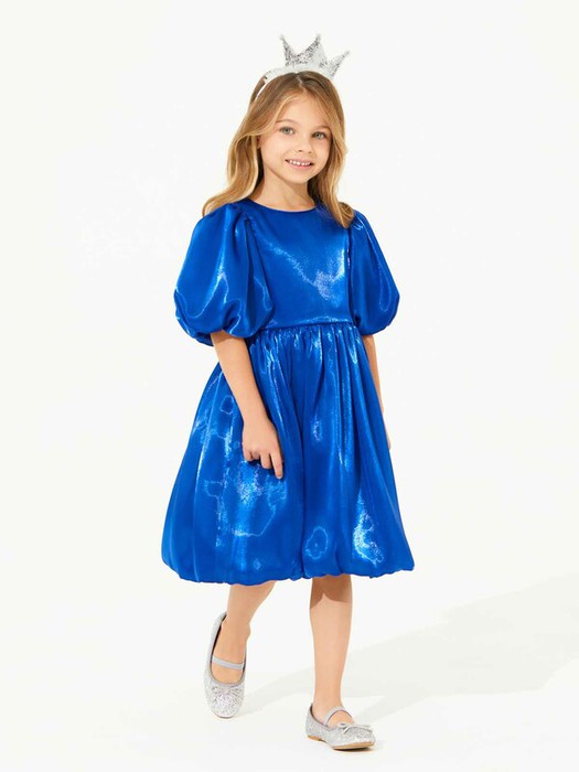 Короткие объемные рукава со сборками придают платью объем и пышность. Застежка на потайную молнию по спинке обеспечивает комфорт и легкость при надевании.