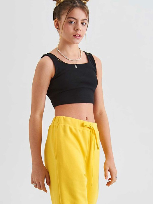 Удобный базовый облегающий топ для девочки, укороченный, с широкими лямками. Выполнен из эластичного трикотажного полотна.