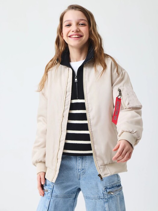 Демисезонная куртка-бомбер для девочки.Модель выполнена из курточной ткани со специальной обработкой. Свободный силуэт, спущенная линия плеча,ветровлагозащитная ткань, куртка создана для максимального комфорта. Куртка прекрасно сочетается с джинсами, классическими, спортивными брюками.