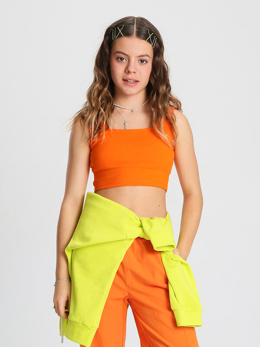Удобный базовый облегающий топ для девочки, укороченный, с широкими лямками. Выполнен из эластичного трикотажного полотна.