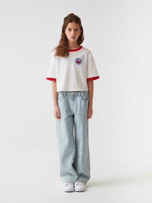 Укороченная футболка для девочки из 100% хлопка. Свободный прямой силуэт и приспущенное плечо. Круглый вырез горловины. Оверсайз силуэт даёт возможность расслабиться и показать всем твою уверенность. Контрастная окантовка и патч с вишней и надписью NO DRAMA CLUB. JUST RELAX (с англ. «никакого драматического клуба. просто расслабься») насыщают футболку деталями. Размерный ряд 128 – 176 см.