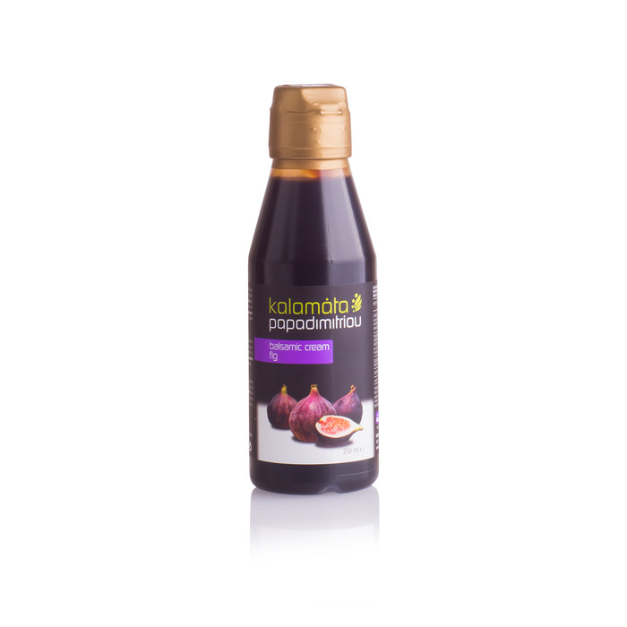 Восхитительный бальзамический крем обогащен экстрактом инжира, создающим комбинацию с особенно ароматным и нежным вкусом. Рекомендация от шеф-повара: «Сделайте сенсационный томатный соус и мясное рагу, используя бальзамический крем с инжиром Kalamata Papadimitriou в качестве своего секретного ингредиента».