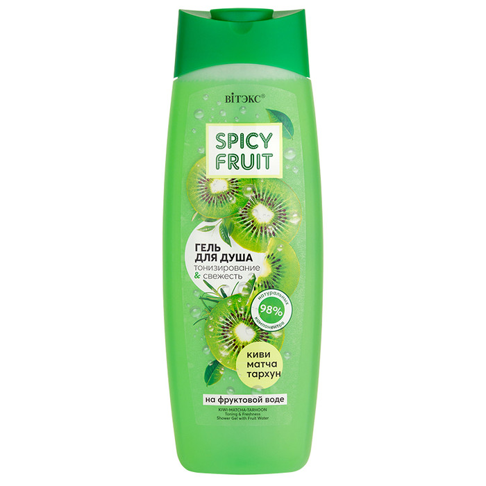Гель для душа Spicy FRUIT на 98% состоит из натуральных компонентов, благодаря чему не только бережно очищает кожу, но и одновременно ухаживает за ней. В основе формулы – крепкий чай матча и натуральный сок свежего, спелого киви, которые оказывают выраженное антиоксидантное действие, превосходно тонизируют и укрепляют кожу, повышают ее упругость и гладкость. Подходит для чувствительной кожи.