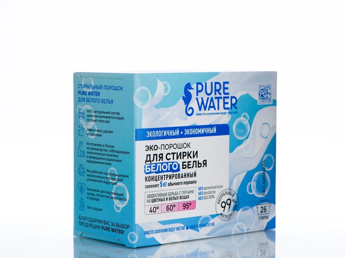 Сохранить чистоту белых вещей, мягкость и свежесть белья без вреда для здоровья способен стиральный порошок Pure Water.
