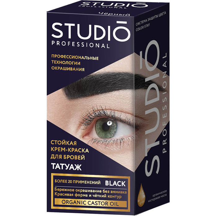 STUDIO Краска д/бровей и ресниц Экстра-черный с эфф.татуажа, 30/20мл (50649 )