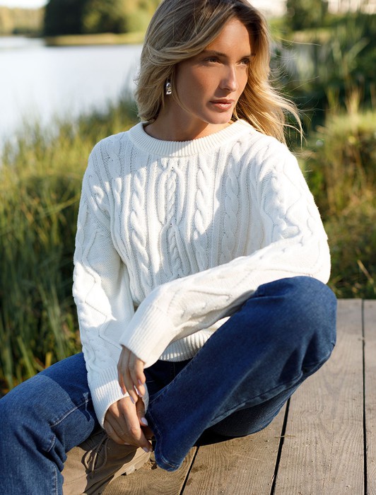 Совместные покупки Сургут Женская одежда Футболки — Свитер фактурной вязки с узором косы