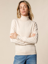 Vilatte Водолазка тонкой вязки из хлопка с нейлоном D34.197 бежевый меланж
