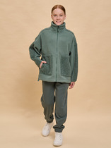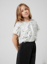 Свитшот для девочки, прямого силуэта,средней длины, с длинными втачными рукавами, круглым вырезом горловины, с манжетами и притачным поясом. Горловина обработана бейкой. Рукава из полупрозрачной ткани с люрексом.